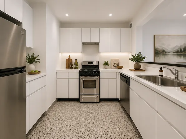 Apartment features: Two queen-size bedrooms with large closets in both rooms. Renovated kitchen with stainless appliances including dishwasher and microwave. Spacious separate windowed living room. Gorgeous renovated bath featuring stall shower with custom tiling.
