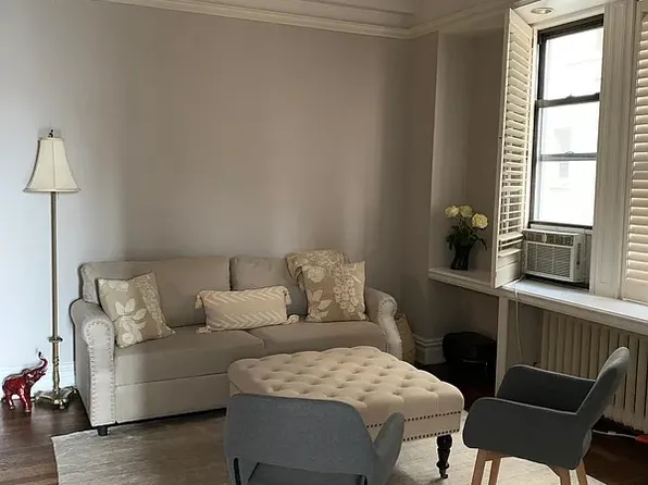 This charming coop apartment boasts a harmonious blend of classic elegance and modern comfort. With three rooms, including a spacious bedroom and a beautifully renovated bathroom featuring an oversized tub, this residence is ideal space for those who appreciate both style and functionality.