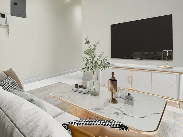 The separate kitchen area features modern appliances, stylish countertops, and plenty of storage, perfect for creating your favorite dishes.