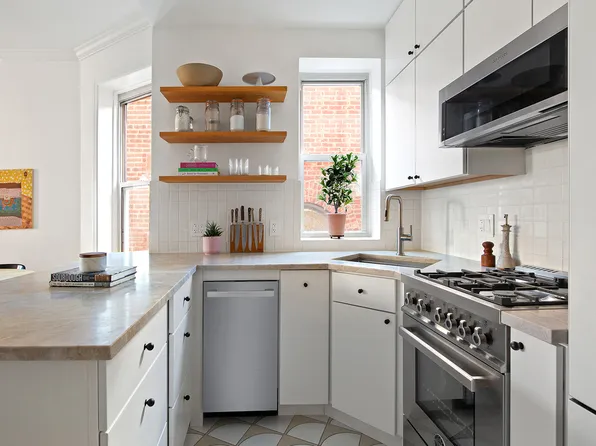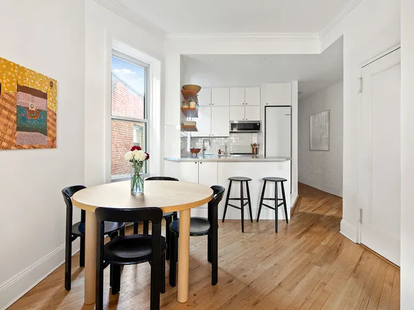 This bright, top-floor two-bedroom apartment offers classic prewar character in a pet-friendly, 8-unit co-op. Exposed brick, hardwood floors, a wood-burning fireplace, a renovated kitchen and bath, plus an in-unit washer and dryer, basement storage, and roof rights make this home a great find.