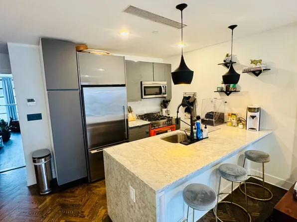 Williamsburg is Brooklyn's booming epicenter with a well-deserved and worldwide reputation for being an influential hub thanks to a thriving cultural scene. Here you will find eye-catching new construction, brownstones, and prewars sitting next to historic buildings on streets dotted with restaurants, art spaces, boutiques, and more. With a Manhattan-facing waterfront (hello Domino Park!) and its large weekend markets (we're talking about you, Smorgasburg, and Artists & Fleas), the neighborhood is ideal for strolling and people watching. Another fringe benefit is Williamsburg's proximity to Manhattan via the G, L, M, and N subway lines.