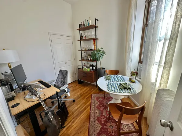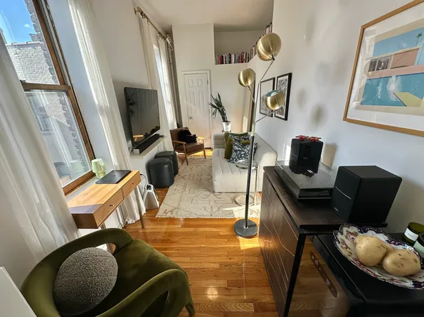 This oversized apartment features a bright, airy layout with excellent natural light and newly finished hardwood floors throughout. The updated kitchen is equipped with stainless steel appliances, including a dishwasher and built-in microwave, offering both style and functionality.