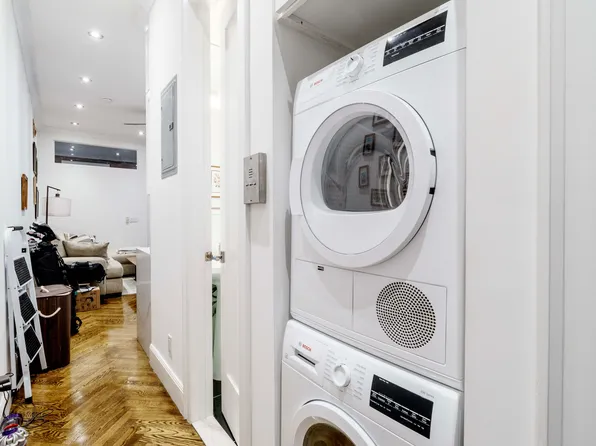 Newly renovated 1 bedroom apartment features exposed brick walls, washer & dryer, marble bathroom, hardwood floors, and high ceilings. Granite kitchen with stainless steel appliances, including a dishwasher, and wine cooler.