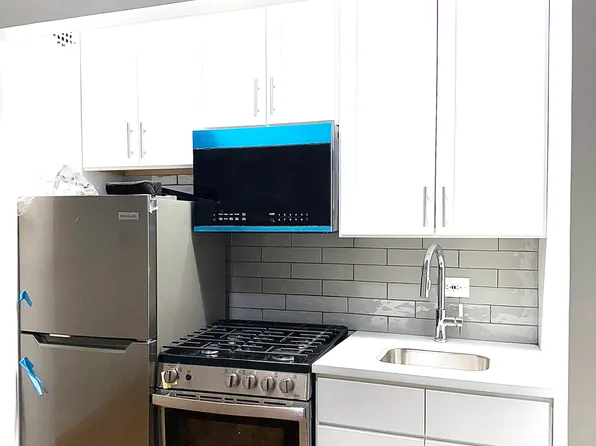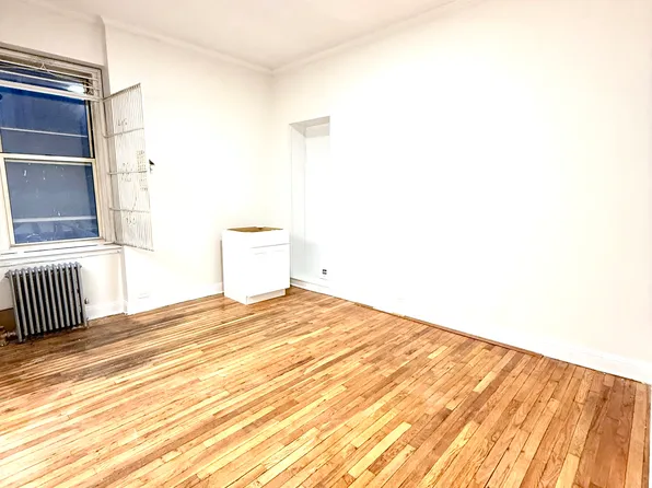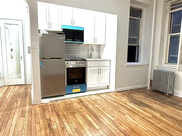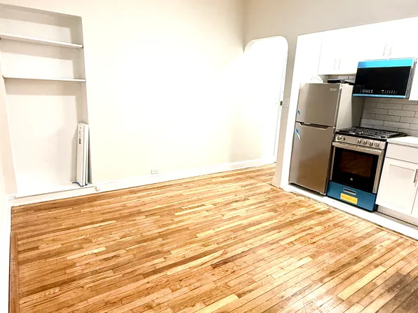 This studio has hardwood floors and a kitchen with full sized appliances. It will come unfurnished.