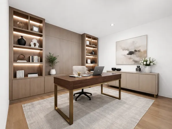 Enter through a proper foyer into a spacious living and dining area with a chef’s kitchen featuring a custom millwork island,...