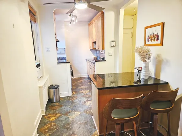 Size and location come together splendidly at this renovated two-bedroom co-op at popular Fort Tryon Gardens in Hudson Heights. You’ll enjoy lots of natural light and a welcoming floorplan that positions living areas and private quarters at opposite ends for maximum privacy. The building is across from one of NYC’s most expansive parks and equally close to shops and restaurants.