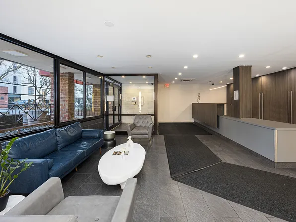 This recently renovated one-bedroom apartment offers a thoughtfully designed living space. The open-concept layout maximizes the apartment's functionality, with a spacious living area seamlessly connecting to a state-of-the-art kitchen. The kitchen boasts sleek white cabinetry, stainless steel appliances, and a convenient breakfast bar, perfect for casual dining or entertaining.