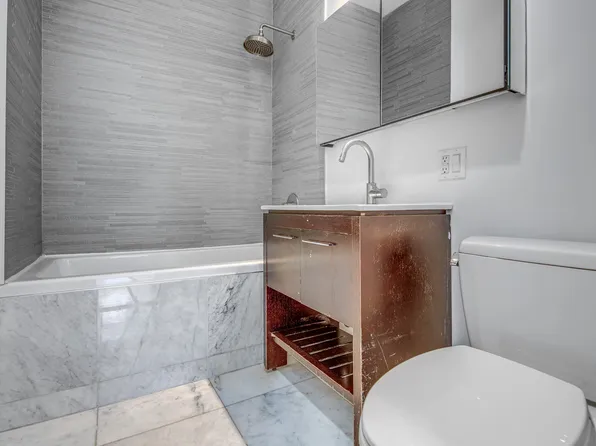 Be the first to live in this meticulously renovated two bedroom two bathroom home, located in a charming brownstone. The layout has been optimized with both bedrooms facing the back of the building and an open concept living & dining room in the front. The kitchen features brand new appliances, oversized sink, and an island with an overhang for barstools and plenty of storage cabinets underneath.