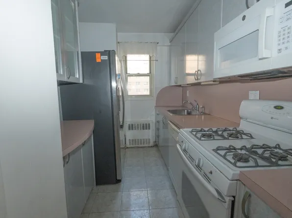 Welcome to beautiful and well-maintained Waterview Towers, located in the Bath Beach section of Brooklyn. This large 2-bedroom one bath coop apt. is located on the 9th floor of a 16-floor building. It faces Cropsey Ave with views of both Manhattan and Coney Island. The apt. was recently painted and offers a large living room with lots of natural sunlight, tiled kitchen floor, original galley kitchen with butcher block countertops, and attached dining area.
