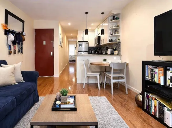 This Second-Floor floor-through apartment boasts both north & south exposures, exposed brick, hardwood floors throughout, renovated bathroom and kitchen, quartz countertops, stainless steel appliances, dishwasher, laundry in building, shared courtyard, large bedroom & huge living area.