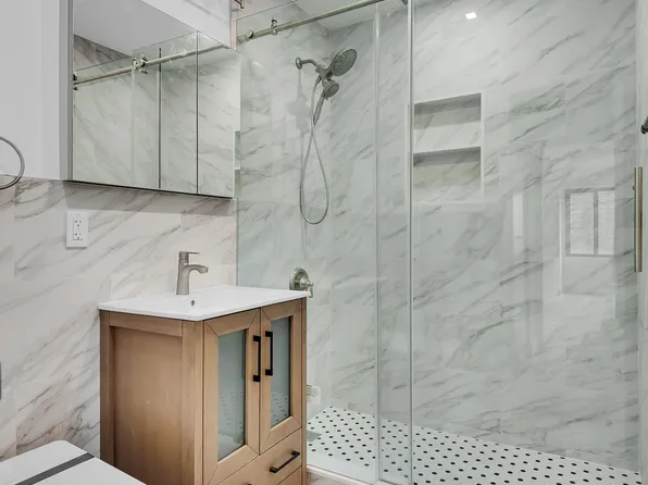 PRIVATE WINDOWED MARBLE BATHROOM WITH BOTH SEPARATE TUB AND SEPARATE SHOWER – ALSO FACING PARK/RESERVOIR!