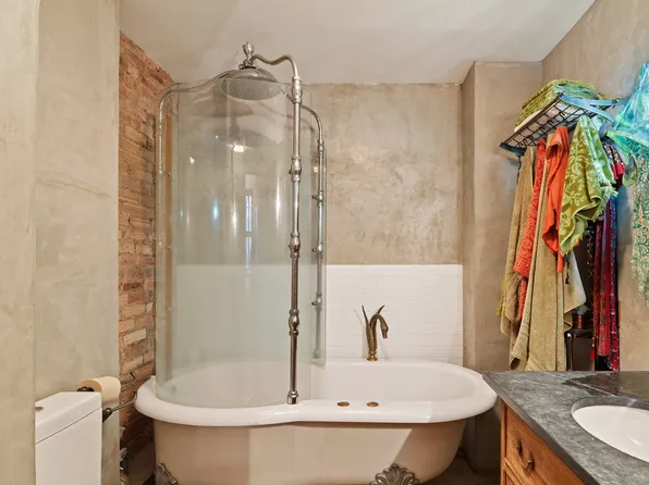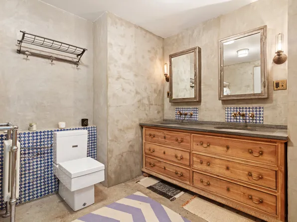 Residence 3W at 28 East 4th Street is a beautifully designed two-bedroom loft that seamlessly blends downtown character with modern luxury. Soaring 10-foot ceilings and expansive proportions create an airy, open feel throughout, anchored by a stunning chef’s kitchen featuring a large marble island, marble backsplash, and top-of-the-line appliances including a Wolf range and oven, Sub-Zero refrigerator, Sub-Zero wine fridge, and Miele dishwasher.