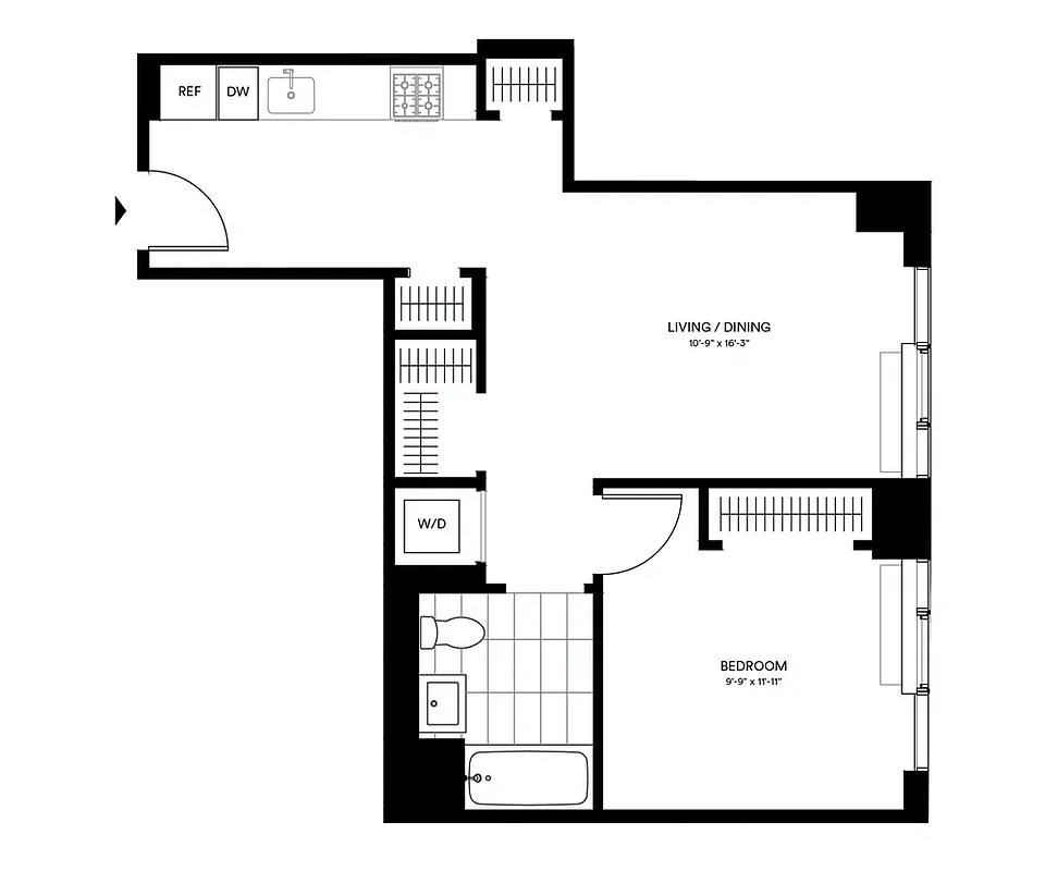 This elegant east-facing one-bedroom residence offers park views and features an in-unit washer/dryer, white desert oak flooring, floor-to-ceiling windows, solar shades, LED lighting and more.