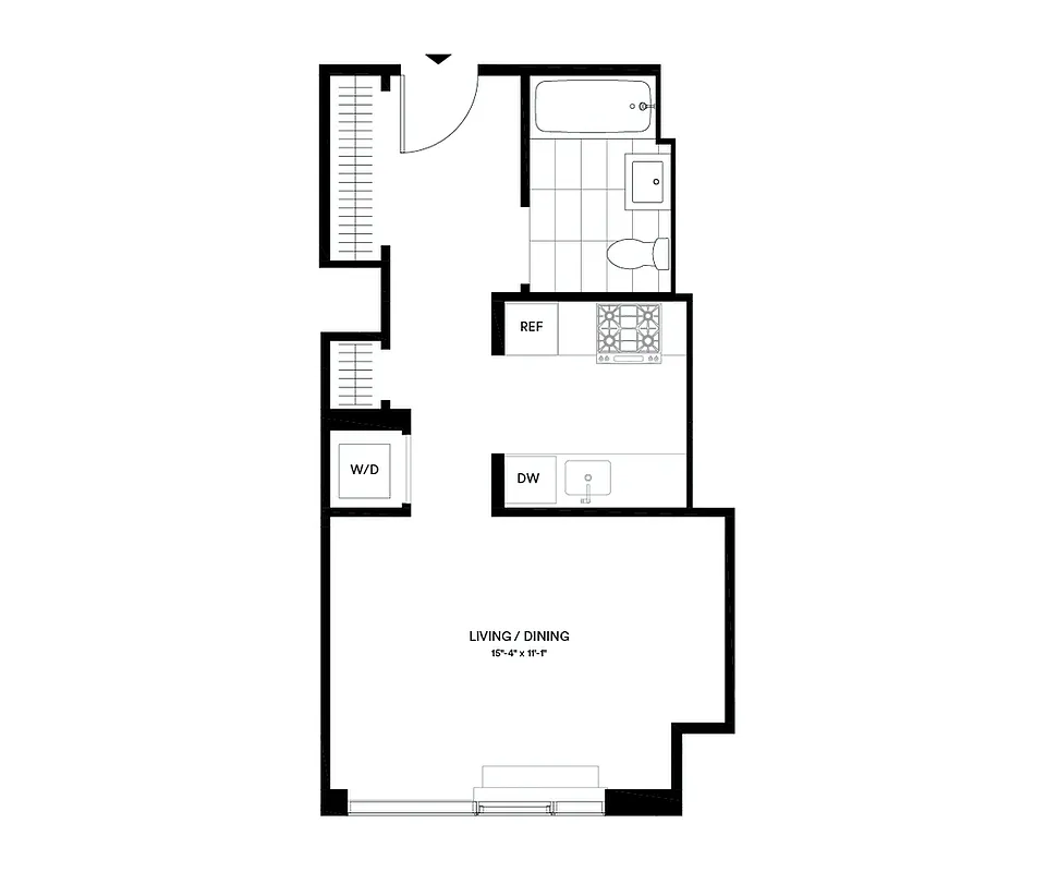 This elegant south-facing studio residence overlooks the park and features an in-unit washer/dryer, white desert oak flooring, floor-to-ceiling windows, solar shades, LED lighting and more.