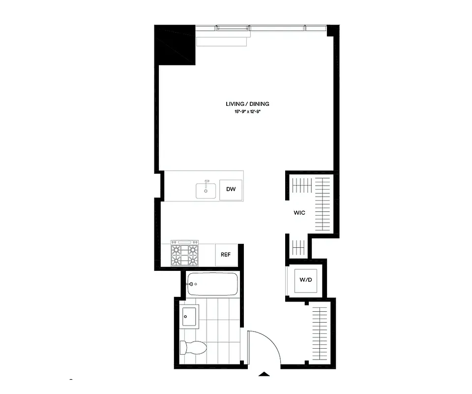 This elegant north-facing studio Penthouse residence features an in-unit washer/dryer, white desert oak flooring, floor-to-ceiling windows, solar shades, LED lighting and more.