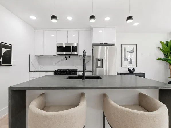Welcome to this sun-filled apartment, featuring soaring ceilings, expansive windows with an open-concept layout flooded with natural light. This one-bedroom unit with an additional den full of potential, walk-in closet, in-unit washer / dryer and a private balcony, offers more than comfort, including features like a NEST Smart Thermostat, new kitchen floors and backsplash, new microwave, as well as new HVAC and water heater.