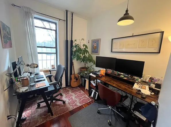 Beautiful sun kissed 3 bedroom 1 bath in Clinton Hill. The apartment features hardwood floors, dishwasher, split units (four zoned), exposed brick, stainless steel appliances, video intercom. The building is well maintained, laundry in the building. Optional bike room for an added fee. Apartment is located on a quiet L-shaped street, a few short blocks from the G and the A/C trains.