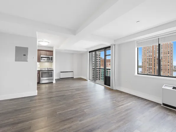 Huge corner 1 BEDROOM with office/den/nursery and two full baths! A beautifully renovated and sun-filled 793 sq ft one bedroom with river and city views at the Waterford Condominium. The apartment features a gracious entry foyer that leads to a windowed pass-thru kitchen with granite countertops and custom cabinets. The living room has oversized windows with bright open views.