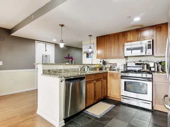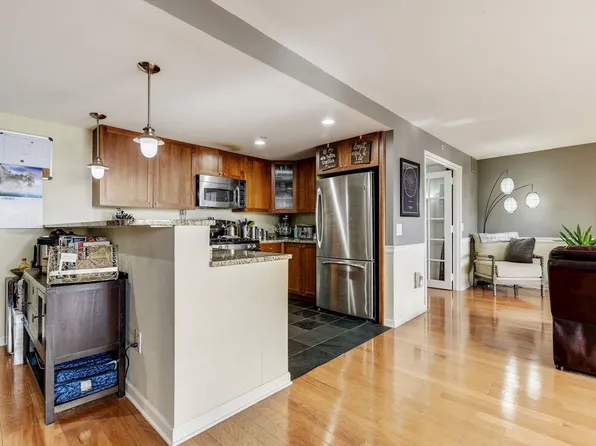 Welcome to this beautifully renovated 2-bedroom, 1-bath condo in the heart of downtown Hoboken—where convenience, style, and location converge. The home features an open-concept kitchen and living area with a breakfast bar peninsula, ideal for everyday living and entertaining. Hardwood floors run throughout, while large windows flood the space with natural sunlight.