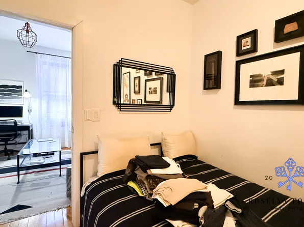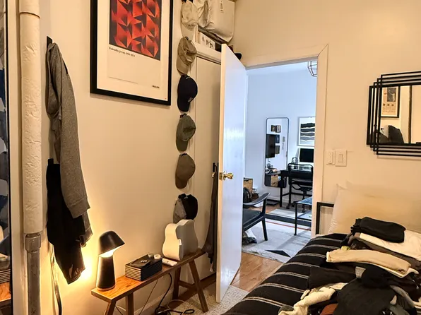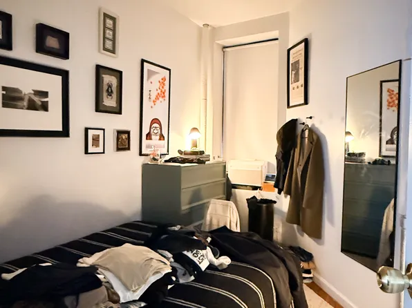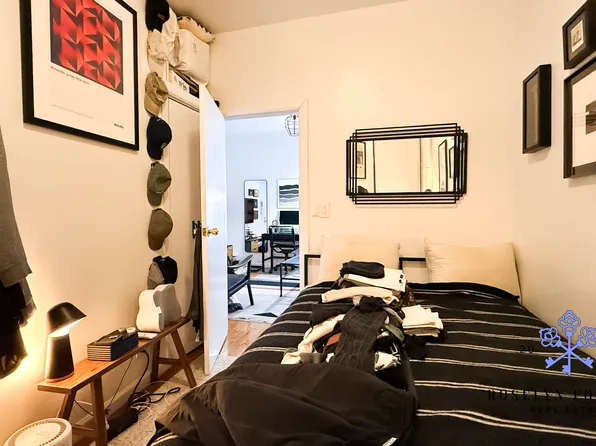 On the fourth (top) floor (walk up; three flights), the unit offers a massive, King-size bedroom along with plenty of storage (walk-in closet is featured). The bathroom has a skylight.
