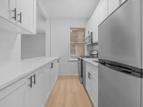 The renown architect, Horace Ginsbern designed the first Art Deco building in the Bronx. This one bedroom apartment is in one of the Ginsbern designed setback buildings. Through the decades the prewar details were maintained leaving the original Grand archway, basket weave floors throughout and a setback shelf. It has arches throughout, windows in each room, high ceilings, entry foyer with two large floor to ceiling closets.