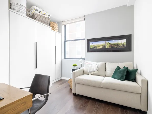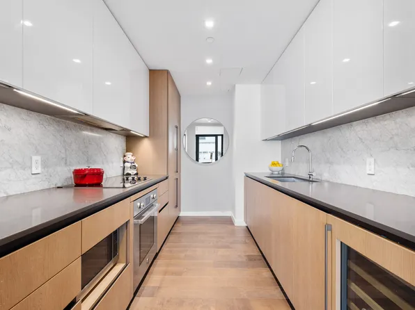 This turnkey brand new apartment features an oversized open kitchen, wine refrigerator, private balcony and loads of light. Enjoy hard wood floors throughout, an in-unit washer/dryer, walk-in closets, and an en-suite 4 piece bath in the primary bedroom.