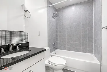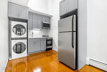 Fresh, stylish, and move-in ready. This beautifully renovated 2-bedroom, 1-bath blends modern updates with classic NYC character—think exposed brick, high ceilings, and hardwood floors. The updated kitchen comes fully equipped with stainless appliances, dishwasher, and microwave, and the in-unit washer/dryer makes everyday living a breeze.