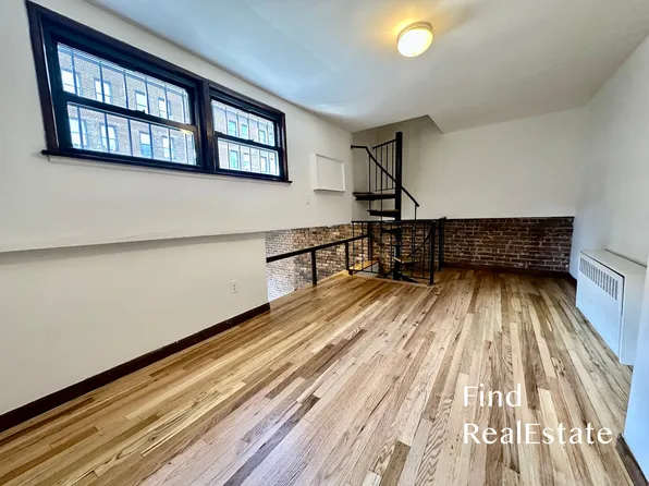 The residence features hardwood floors, exposed brick, and high ceilings, creating a warm and inviting living space filled with natural light.