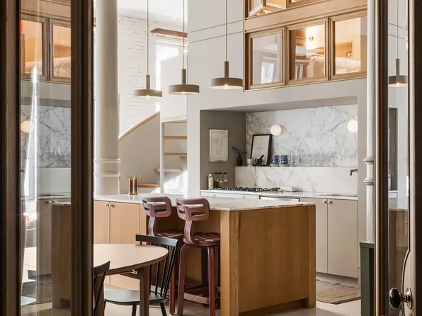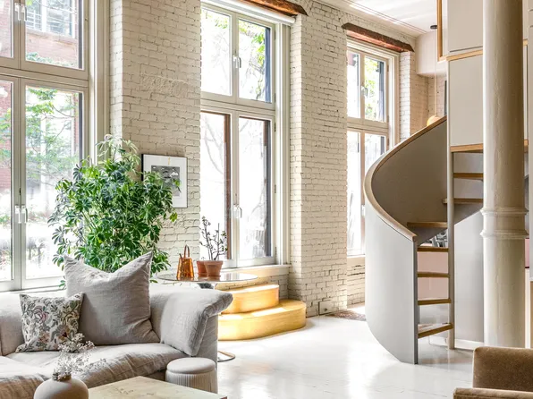 The grand front steps of this historic and handsome Greenwich Village pre-war brownstone and brick faced building lead you into the elegant lobby with its original central staircase covered in marble treads and large marble pavers at each landing, an elaborate bronze and iron baluster, a voluptuously curved wooden banister, as well as original gas light fixtures, and then you will find yourself at...
