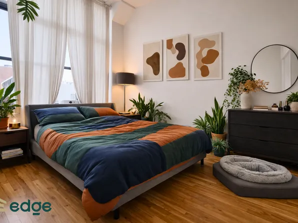1-bedroom apartment in a 22-unit converted rectory building in East Williamsburg. The unit features hardwood floors, large windows with great natural light, a modern kitchen with stainless steel appliances and dishwasher, and a queen/king-size bedroom with closet space. Virtual doorman included.