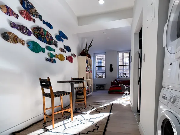 Nestled in the heart of Tribeca, this beautifully appointed twobedroom residence at 310 Greenwich Street offers a bright, welcoming atmosphere enhanced by thoughtful design and a highly functional layout. The home opens into an airy living and dining space, featuring an alcove perfectly suited for everyday meals or intimate dinner gatherings.