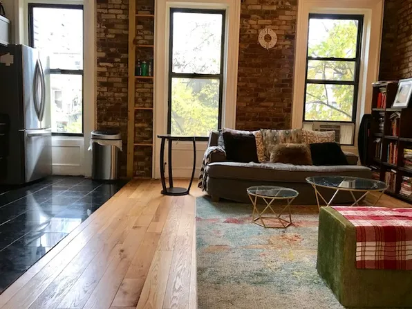 (ALL UTILITIES INCLUDED / BROWNSTONE) Renovated bathroom and kitchen with black-on-black appliances (including dishwasher and microwave). Hardwood floors. Exposed brick Walls. High ceilings and non-railroad bedrooms. Close to all - transportation, Barclays Center, restaurants, cafés, P.S. 39 school district. FREE Laundry room in building. Available September 1st Must see - Will not last !!