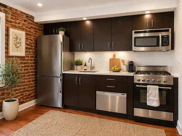 Kitchen is recently renovated with granite countertops, dishwasher and stainless appliances. This is an elevator building with unit on the 5th floor.
