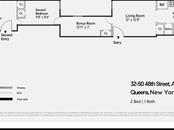 This well-maintained two-bedroom railroad-style apartment offers excellent space and flexibility in a desirable Astoria location. The layout features rooms positioned in a straight line, creating a classic New York flow.