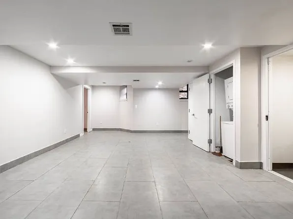 This sprawling garden apartment features two queen sized bedrooms upstairs, a large basement downstairs with multiple rooms, updated kitchen with stainless steel appliances and 1.5 baths.
