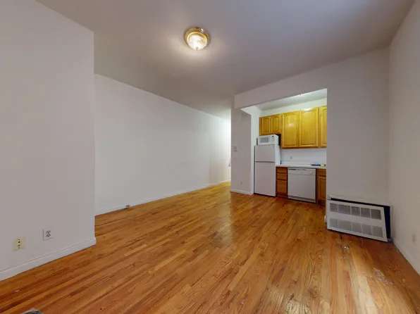 The apartment is only flight up, which is ideal for a walkup. The apartment features an open style kitchen that marries perfectly with the living room.