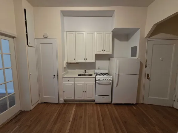 Come home to this sun-flooded, renovated, corner 2 Room Studio with it’s beautiful custom kitchen cabinets, windowed bathroom, S & W exposures, and charming views of trees from the Bedroom. Located on a quiet block in an immaculately kept building with laundry.