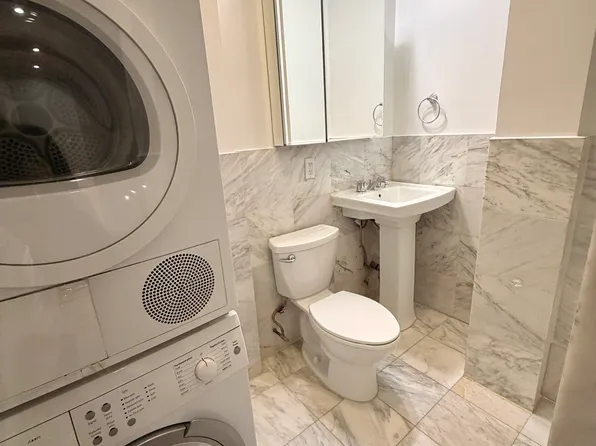 No fee ground floor 2 bedroom, 1 bath apartment for rent in owner occupied townhouse. The house was built 3 years ago and apartment has all modern amenities: Dishwasher, washer dryer, central AC/heat, intercom, and comes with fios high speed internet. Both bedrooms have closets and there's stairs leading to a small basement room that can be used as storage or a studio. Small outdoor space in the back.