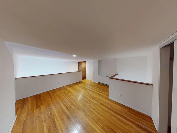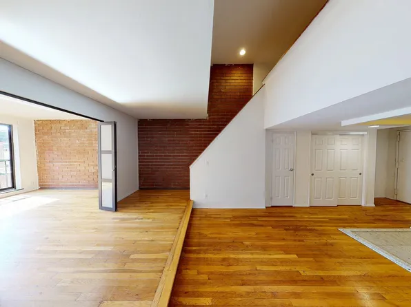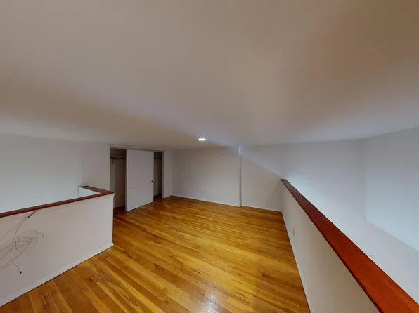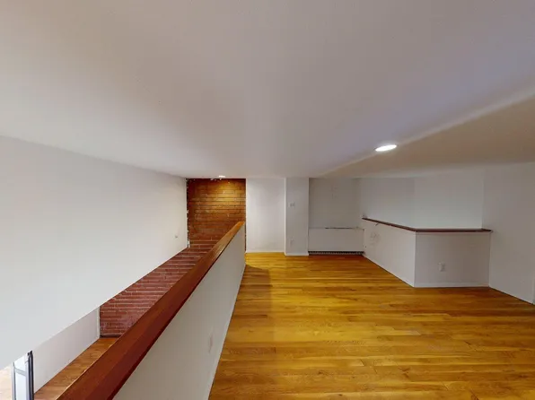 First time offered for rent, this ultra cool and unique rear duplex carriage house is accessed by a private walkway and nestled behind the garden of the main townhouse. The first floor of this duplex home includes a wall of windows, open kitchen with center island, dining area, and an updated windowed bathroom. The upper floor features an open living room/bedroom area, a wall of windows, dramatic sun-flooded skylight, wood burning fireplace, exposed brick and two large double closets.