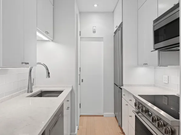 Your new home features large living space with tons of natural light, separate windowed kitchen with stainless steel appliances, abundance of closet space, parquet floors and high ceilings.