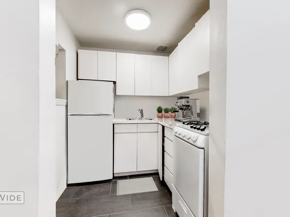 LARGE Studio in a well-maintained building on a tree-lined block. Hardwood floors, high ceilings with recessed lighting and through the wall air conditioner. Double closets. A separate renovated window kitchen with granite countertops, backsplash and full size dishwasher. Your generous living area comfortably fits a sofa, desk area, queen bed, storage furniture and more.