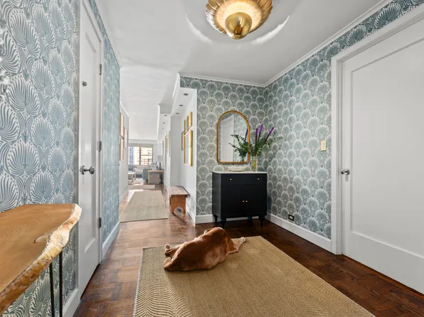 From a semi-private elevator vestibule, enter this well maintained and spacious classic seven-room home, perfectly blending timeless prewar elegance with comfortable living. The residence features generously proportioned rooms, original hardwood floors, and beamed ceilings throughout.