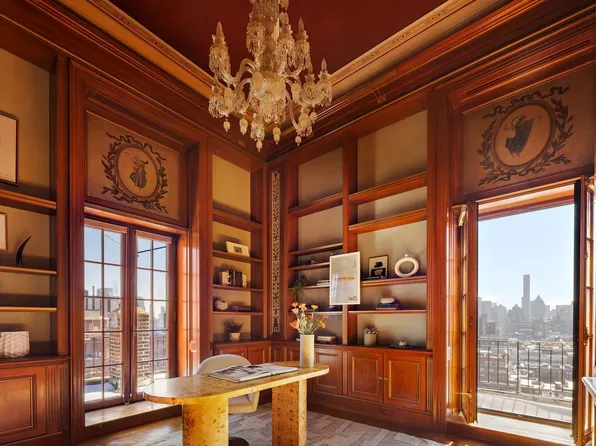 A entire floor, atop a fine prewar co-op building, it is surrounded by newly renovated, private, setback terraces and bathed in light. It is stunning and elegant, yet warm and inviting.