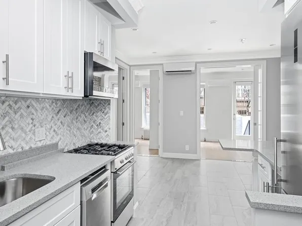 Light-filled brownstone triplex offering 4 bedrooms and 4.5 baths, with hardwoods throughout and delightful details like exposed brick accent walls and bay windows. Quietly located in the heart of East Harlem, the first floor has 12'4" ceilings and offers an airy living room with an exposed brick wall, a half-bath, a separate dining room with charming niche cutouts, and the open tiled kitchen, which...