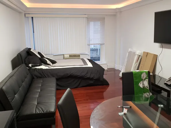 This beautifully renovated studio apartment features stunning ebony hardwood floors, central air conditioning, and bright, sun-filled living spaces.