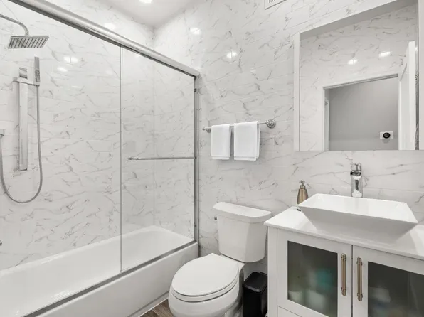 NYC Views direct from unit plus a massive private rooftop with direct views for this home! Four brand new construction homes in prime Jersey City Heights location. 3447 JFK Blvd are exclusive residences featuring modern design, high-end finishes, and open-concept layouts. The living room is anchored by a sleek linear fireplace, flanked by custom built-in shelving with warm wood accents.