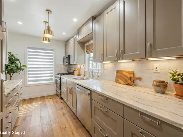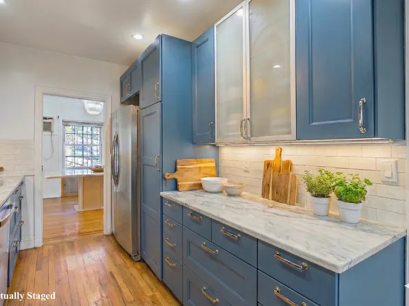 This lovely Brick Row House located in the Jackson Heights Historic District and is move-in-ready. It features 3 bedrooms and 2 bathrooms with a great layout. The first floor includes a living room, formal dining room, and an updated galley kitchen. Enter the first level through the vestibule with a French door to the living room. The living room has a fieldstone fireplace.