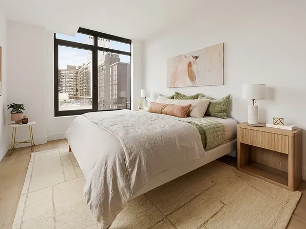 Spanning 1,237 square feet, this brand-new residence invites you to discover Madera wide-plank white oak floors and tall ceilings dotted with recessed ultra-thin LED lighting throughout.
