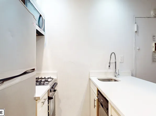This lofted 1 bed features high ceilings, generous storage throughout, and a new kitchen outfitted with stainless steel appliances. The marble bathroom includes a Toto toilet and rainfall shower. Located in the rear of the building, 1F is pin-drop quiet.
