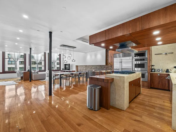 A sprawling, gut-renovated full-floor loft spanning approximately 6,200 square feet, offering 3–4 bedrooms and soaring 13-foot ceilings in a boutique Tribeca condominium.